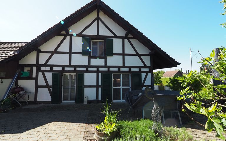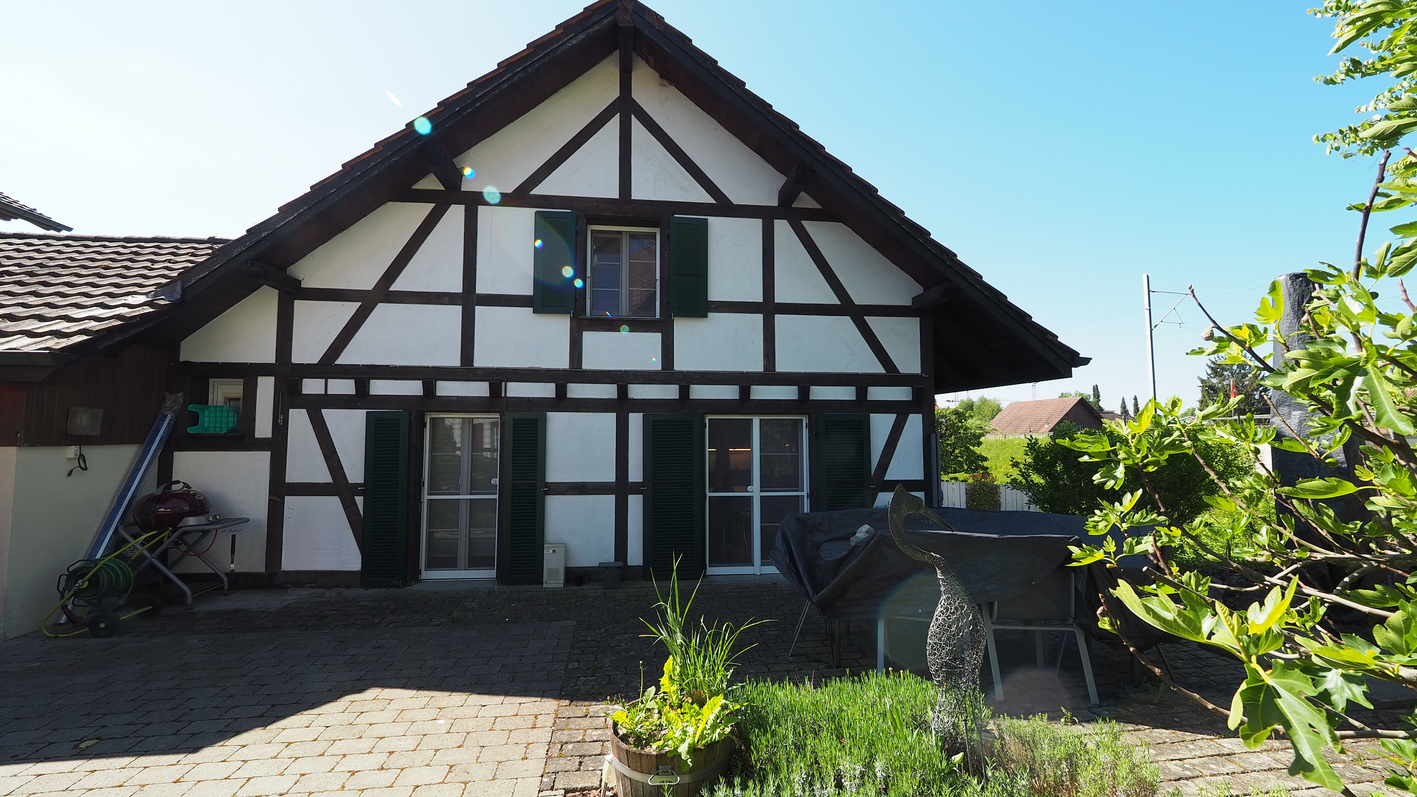 Der Zwischenbau, welcher die Liegenschaften miteinander verbindet, wurde aus einer ehemaligen Garage und Werkstatt in eine schöne und offene 2.5 Zimmer Maisonette-Wohnung umgebaut.