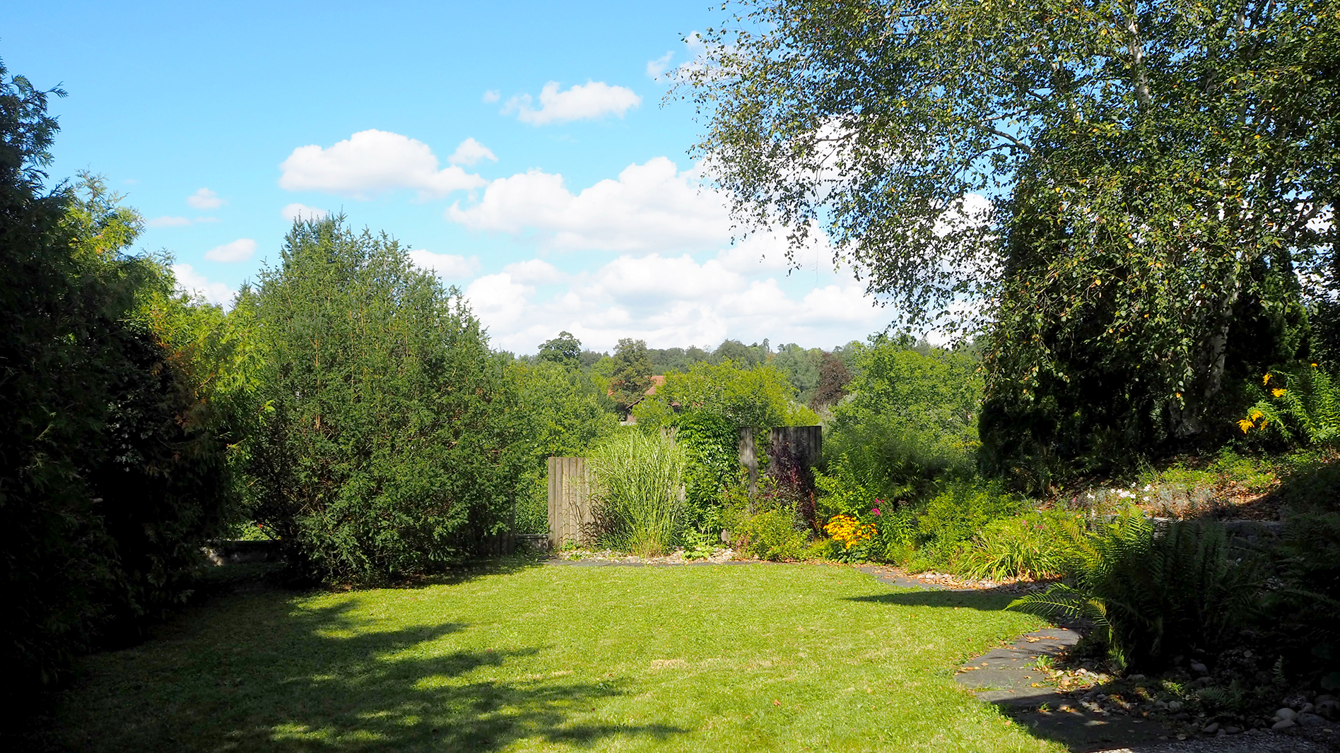 Der liebevoll gepflegte Garten mit aufwändiger Bepflanzung und altem Baumbestand sichert Privatsphäre und ist ein wertvoller Erholungsraum für Mensch und Tier. Der Sommer lässt sich hier zelebrieren und das Gartenhaus bietet den perfekten Ort für die Familie und Freunde. Naturliebhaber werden den eigenen Wald zu schätzen wissen.